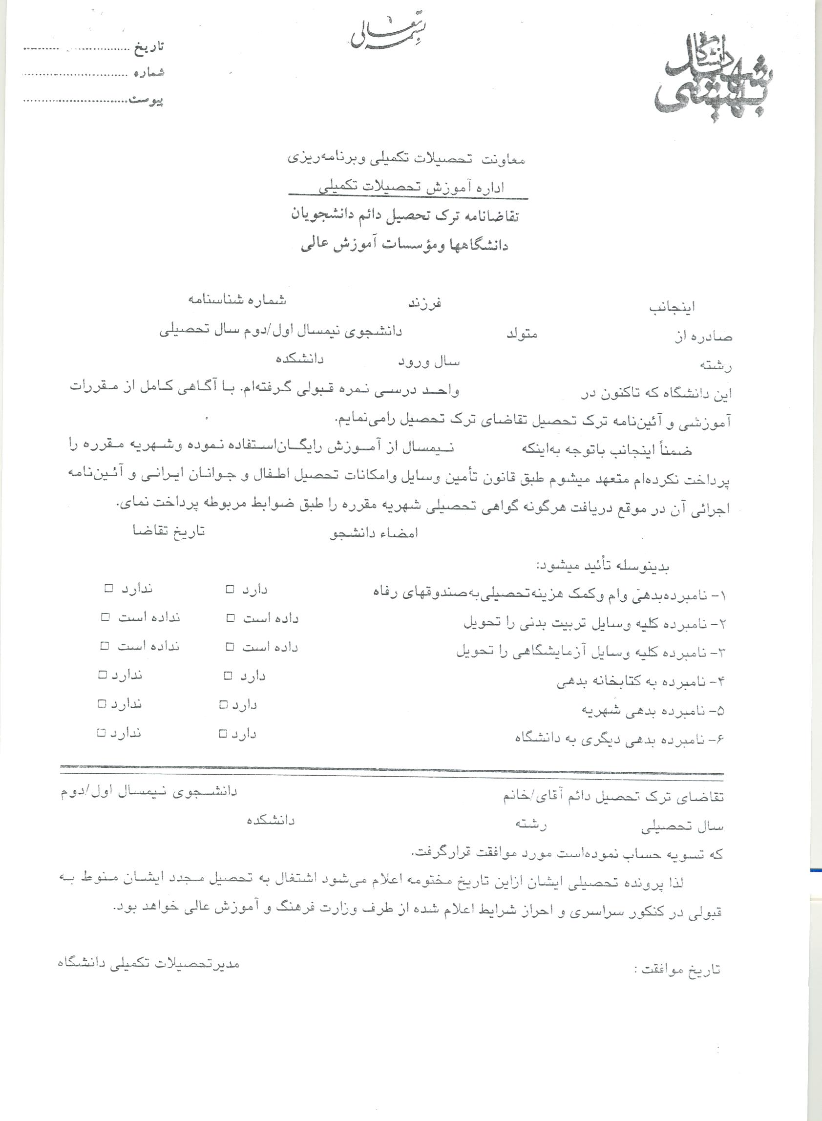 فرم تخفیف شهریه برای رتبه اول شبانه