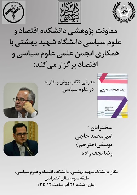 معاونت پژوهشی دانشکده اقتصاد و علوم سیاسی دانشگاه شهید بهشتی با همکاری انجمن علمی علوم سیاسی و اقتصاد دانشگاه شهید بهشتی برگزار می‌کند: