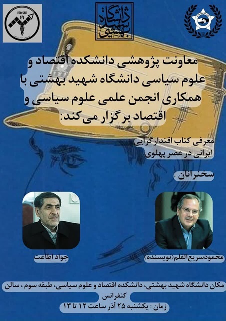 معاونت پژوهشی دانشکده اقتصاد و علوم سیاسی دانشگاه شهید بهشتی با همکاری انجمن علمی علوم سیاسی و اقتصاد دانشگاه شهید بهشتی برگزار میکند: