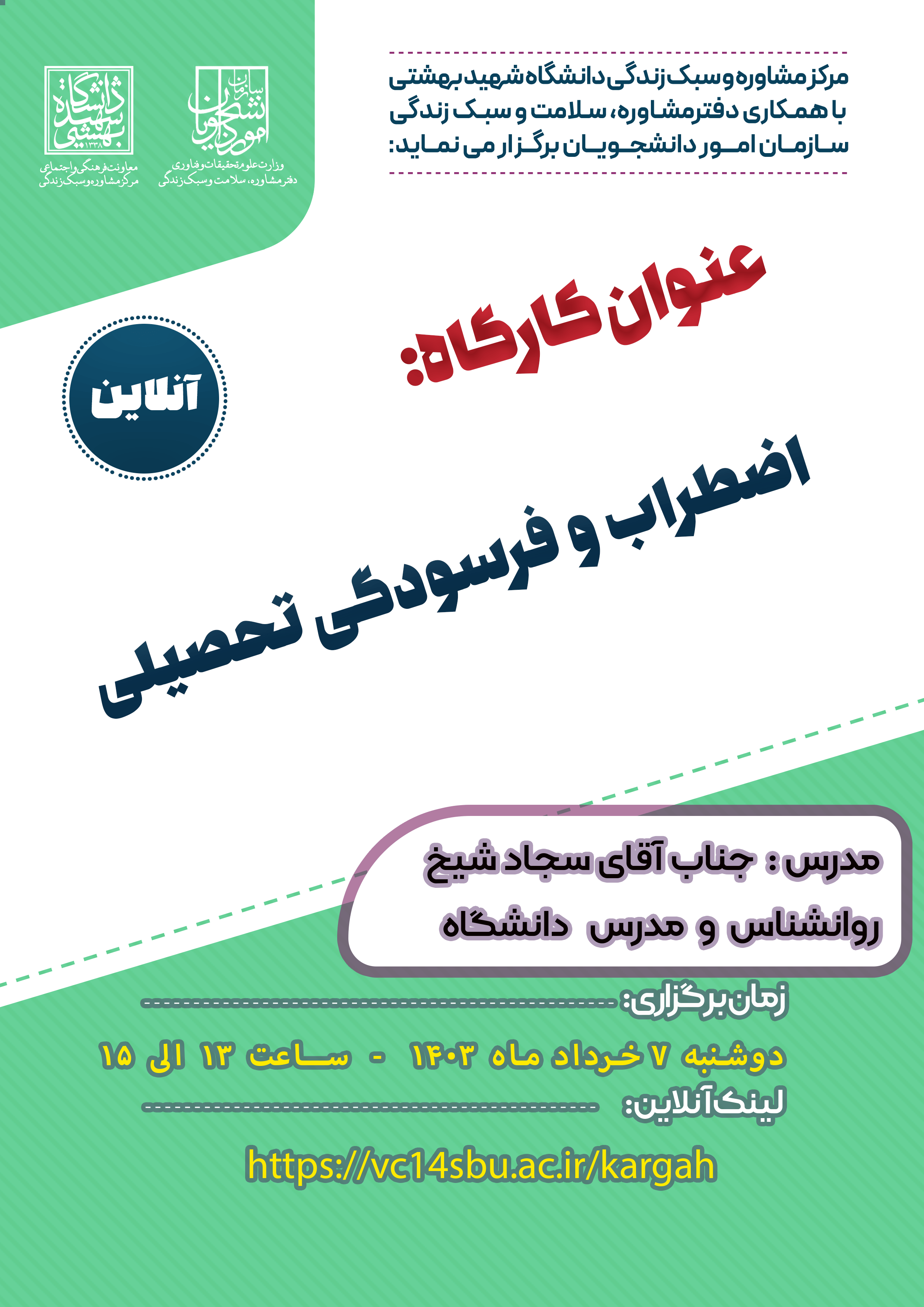 کارگاه مجازی اضطراب و فرسودگی تحصیلی ویژه ایام امتحانات با حضور جناب آقای سجاد شیخ روانشناس و مدرس برگزار گردید.