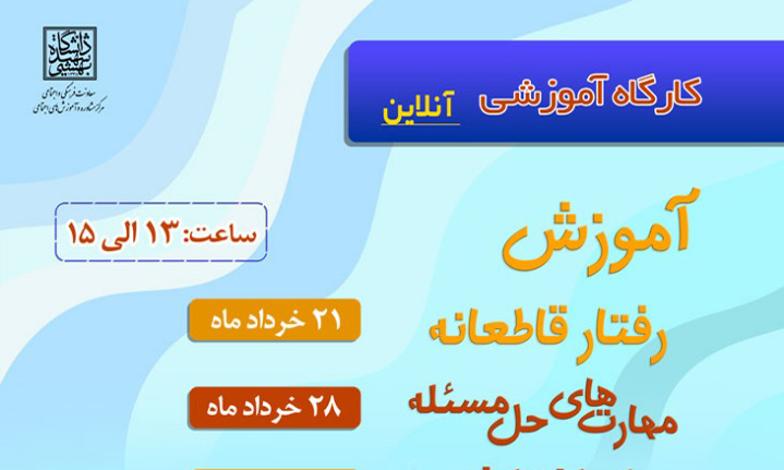 مركز مشاوره و آموزشهای اجتماعی برگزار مي‌كند كارگاه آموزشی آنلاين «رفتار قاطعانه» امروز شنبه 21 خرداد ١٤00 دانشجويان و دانشگاهيان گرامی، جهت شركت در كارگاه آموزشی مذكور، می‌توانيد از طريق لينک زير اقدام فرماييد. https://webinaronline.ir/Link/S2237671135