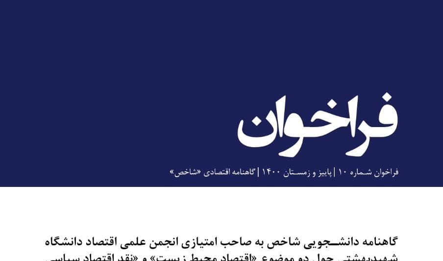 گاهنامه دانشجویی شاخص به صاحب امتیازی انجمن علمی اقتصاد دانشگاه شهیدبهشتی حول دو موضوع "اقتصاد محیط زیست”و “نقد اقتصاد سیاسی مدرن” از دانشجویان، فعالان و علاقمندان حوزه اقتصاد و علوم اجتماعی جهت همکاری دعوت میکند.