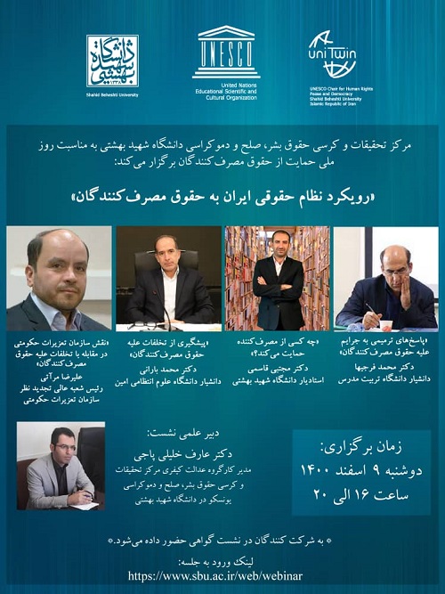 این وبینار به همت مرکز تحقیقات و کرسی حقوق بشر، صلح و دموکراسی یونسکو  به مناسبت روز ملی حمایت از حقوق مصرف کنندگان برگزار می شود.