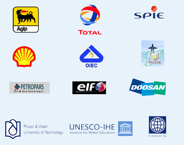 • 2- آموزش‌های شرکت‌های TOTAL،AGIP،ELF،ENI،SHELL و پتروپارس و کلیه فازهای پارس جنوبی، همچنین کارکنان جدیدالاستخدام شرکت گاز استان تهران، شرکت معدن گل گهر سیرجان، شرکت فولاد هرمزگان
