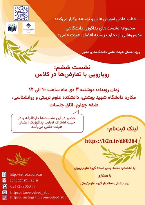 ششمین نشست رویداد پداگوژی دانشگاهی با موضوع «رویارویی با تعارض ها در کلاس درس» دوشنبه سوم دی 1403 برگزار می شود.